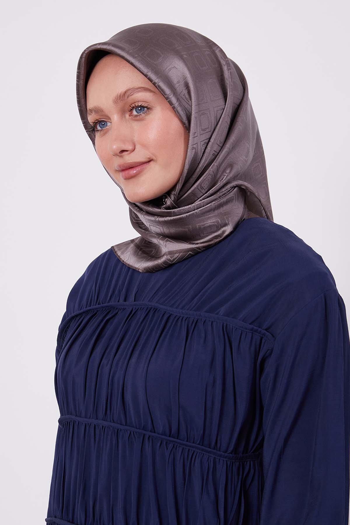 ميزات وشاح حريري بنمط مونوغرام بنقشة البقلاوة باللون البني من Levidor