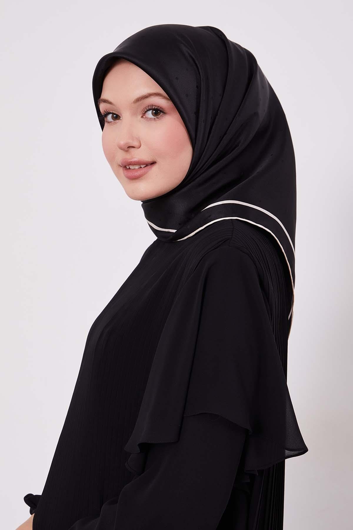 ميزات وشاح حريري بنمط مونوغرام منقط باللون الأسود من Levidor
