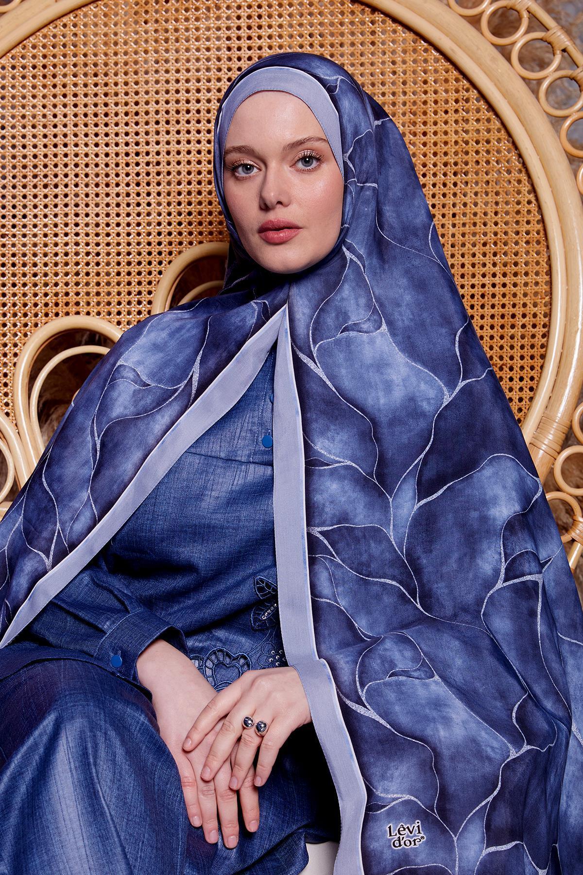 Levidor شال ملكي منقوش باللون الأزرق