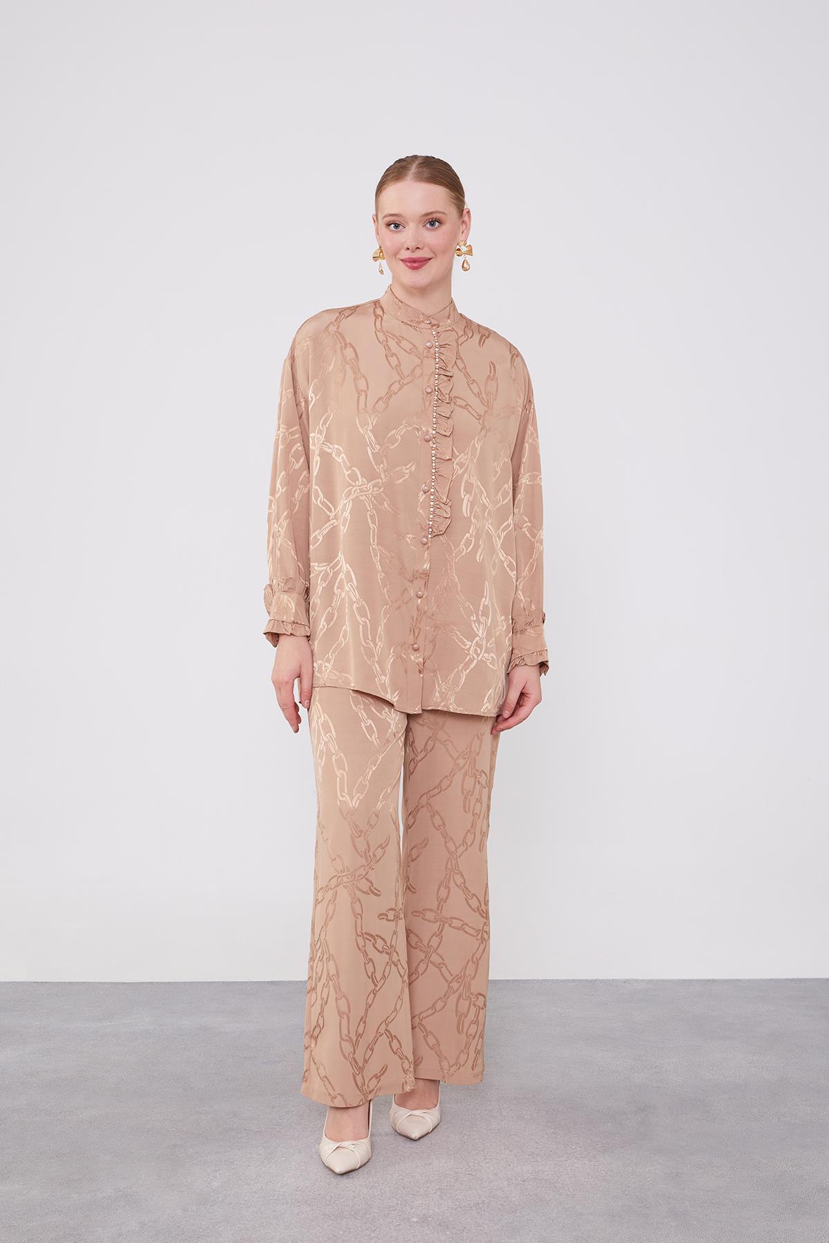 ميزات طقم مكون من قطعتين بنمط سلسلة مزخرفة بأزرار مكشكشة بلون الجمل من Levidor