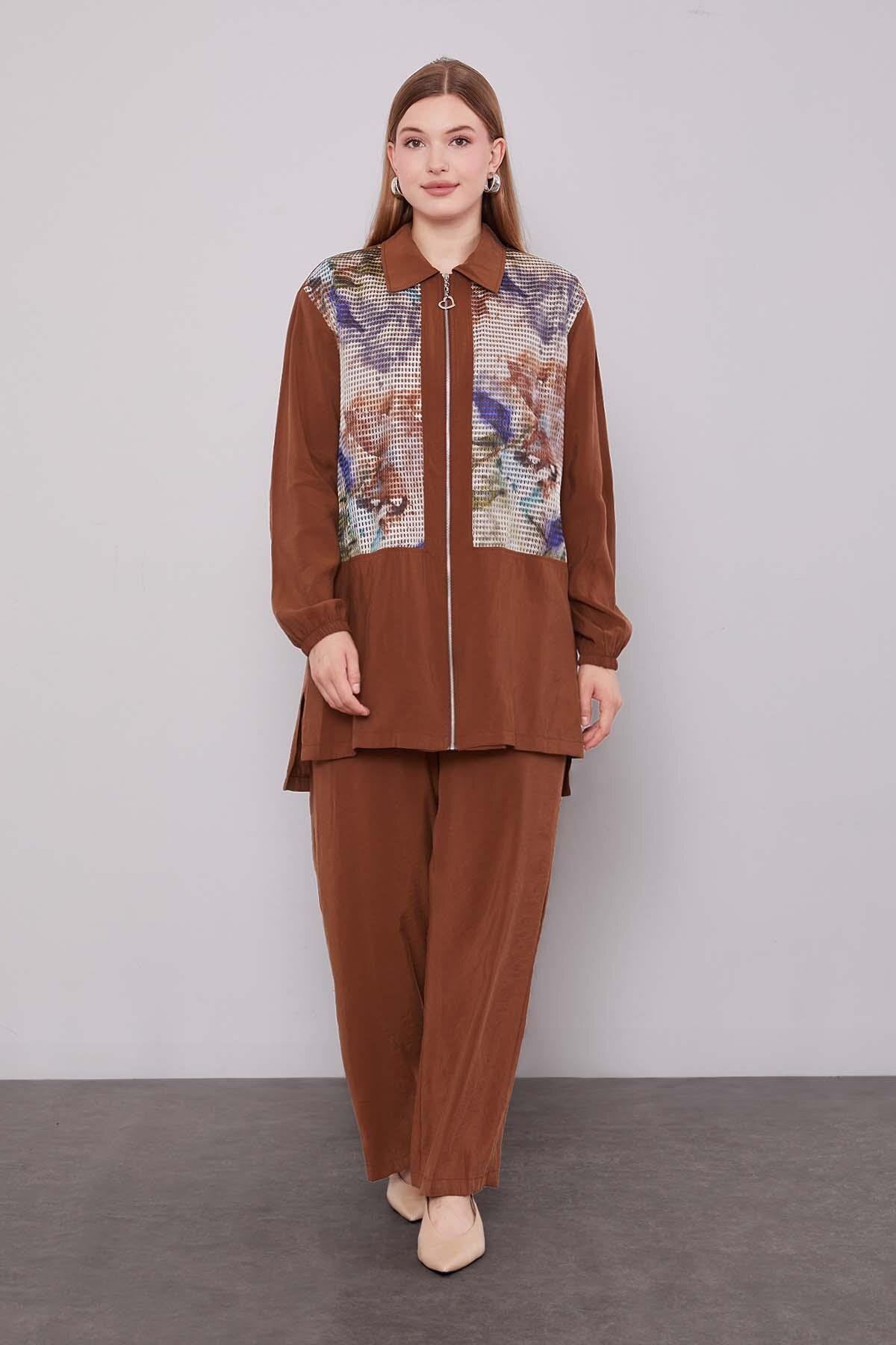 Levidor طقم مكون من قطعتين بطبعة شبكية باللون البني