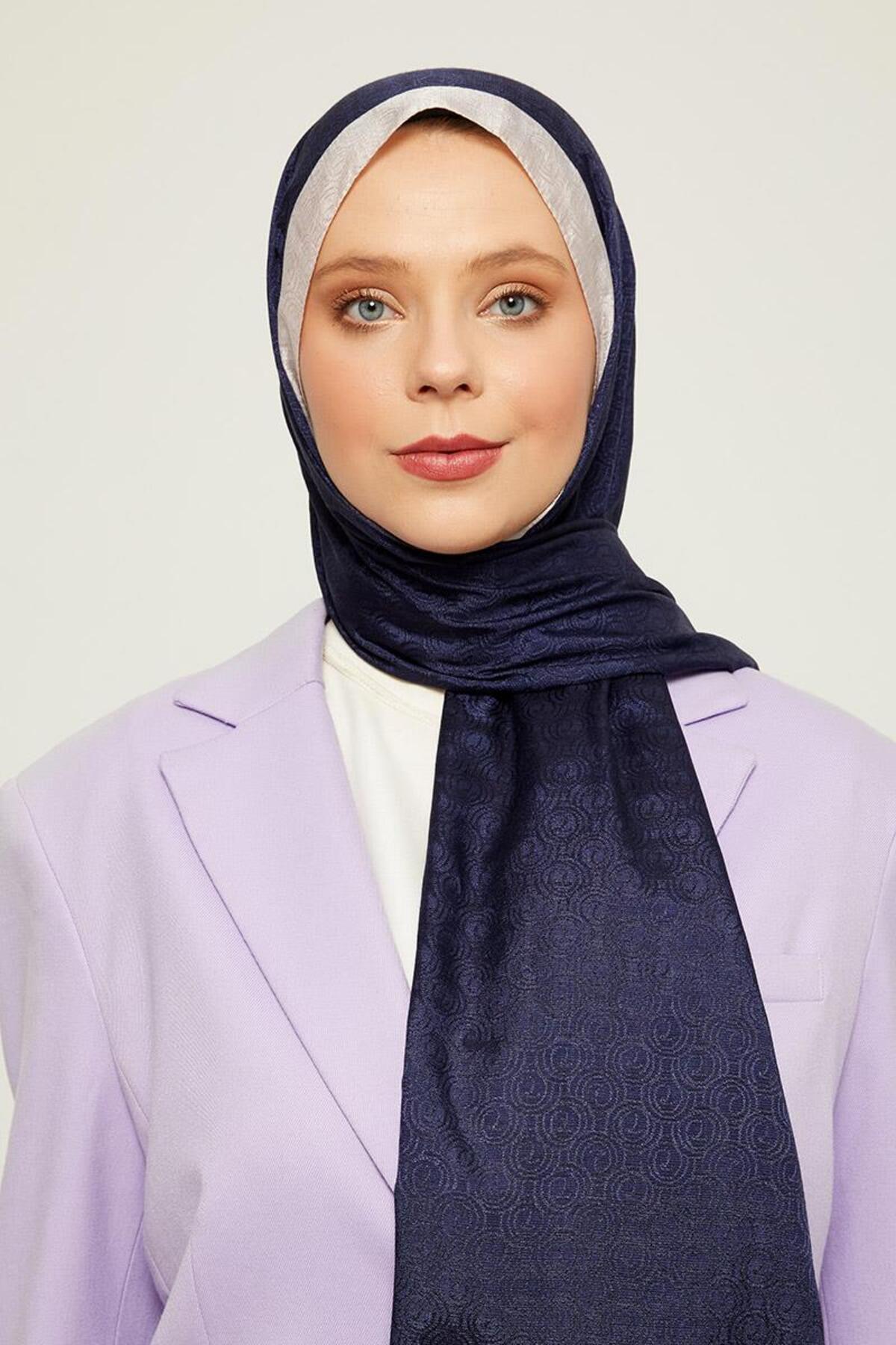 ميزات شال مونوغرام بنمط حلقة باللون الأزرق الداكن من Levidor