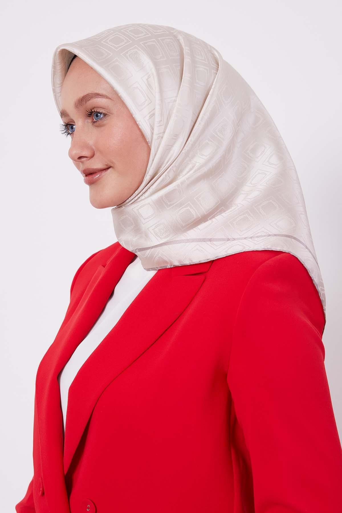 ميزات وشاح حريري بنقشة البقلاوة بلون الكريم من Levidor