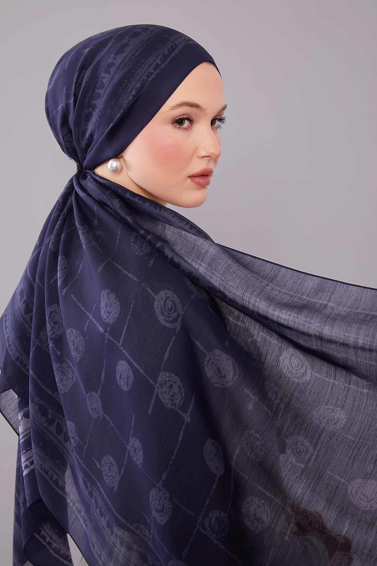 Levidor شال من الحرير والصوف بنمط دائري باللون النيلي