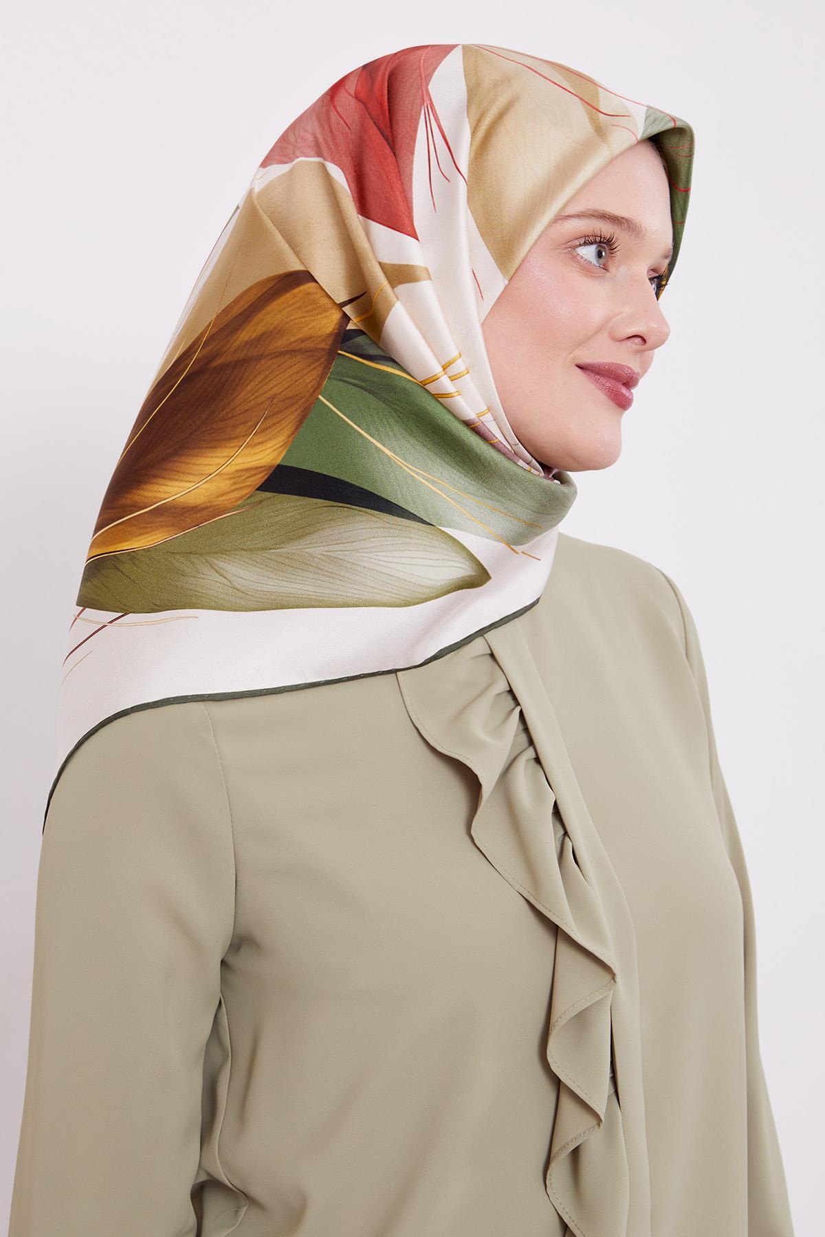 Levidor وشاح حريري منسوج بنمط أوراق الشجر الرفيعة باللون الأخضر