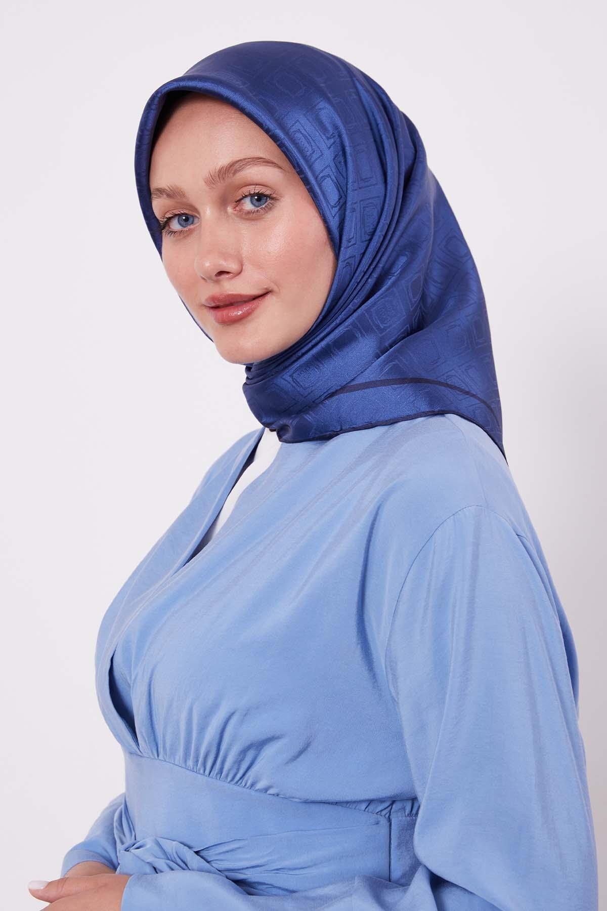 Levidor وشاح حريري بنمط البقلاوة باللون الأزرق الداكن