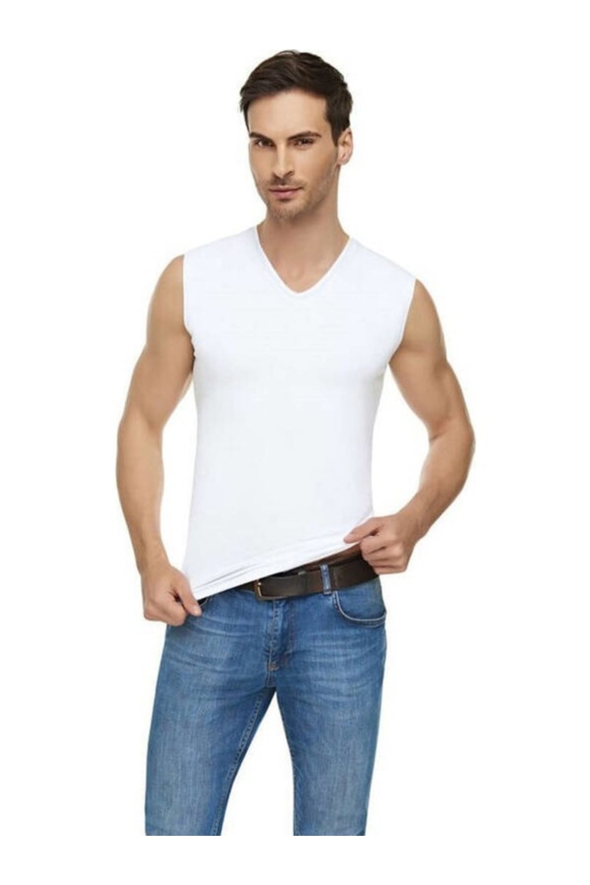LEVVE قميص داخلي رجالي بدون أكمام ورقبة على شكل حرف V