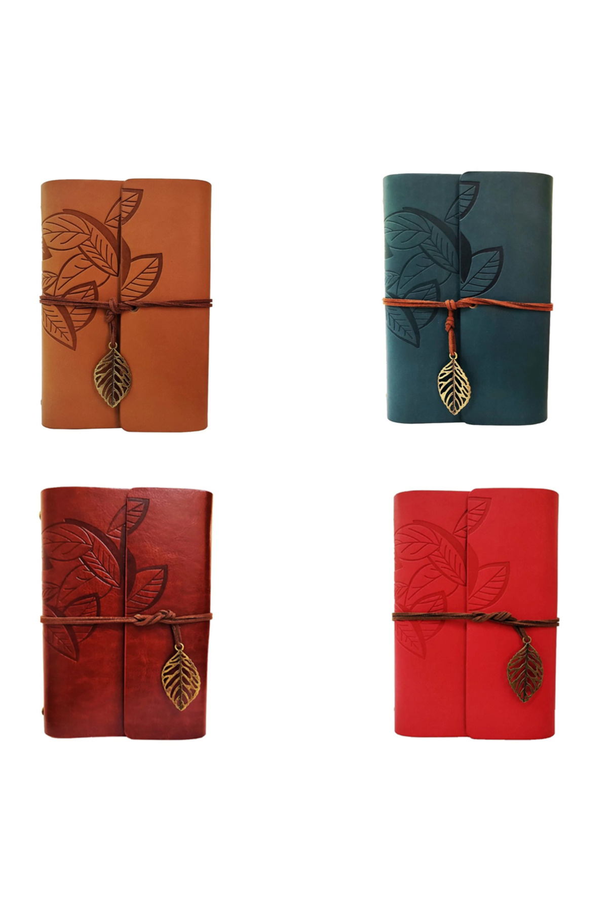 Leyaton LWLHMRS-IEG ieg ™ دفتر ملاحظات من الجلد غير المبطن بنمط أوراق الشجر باللون الأرجواني