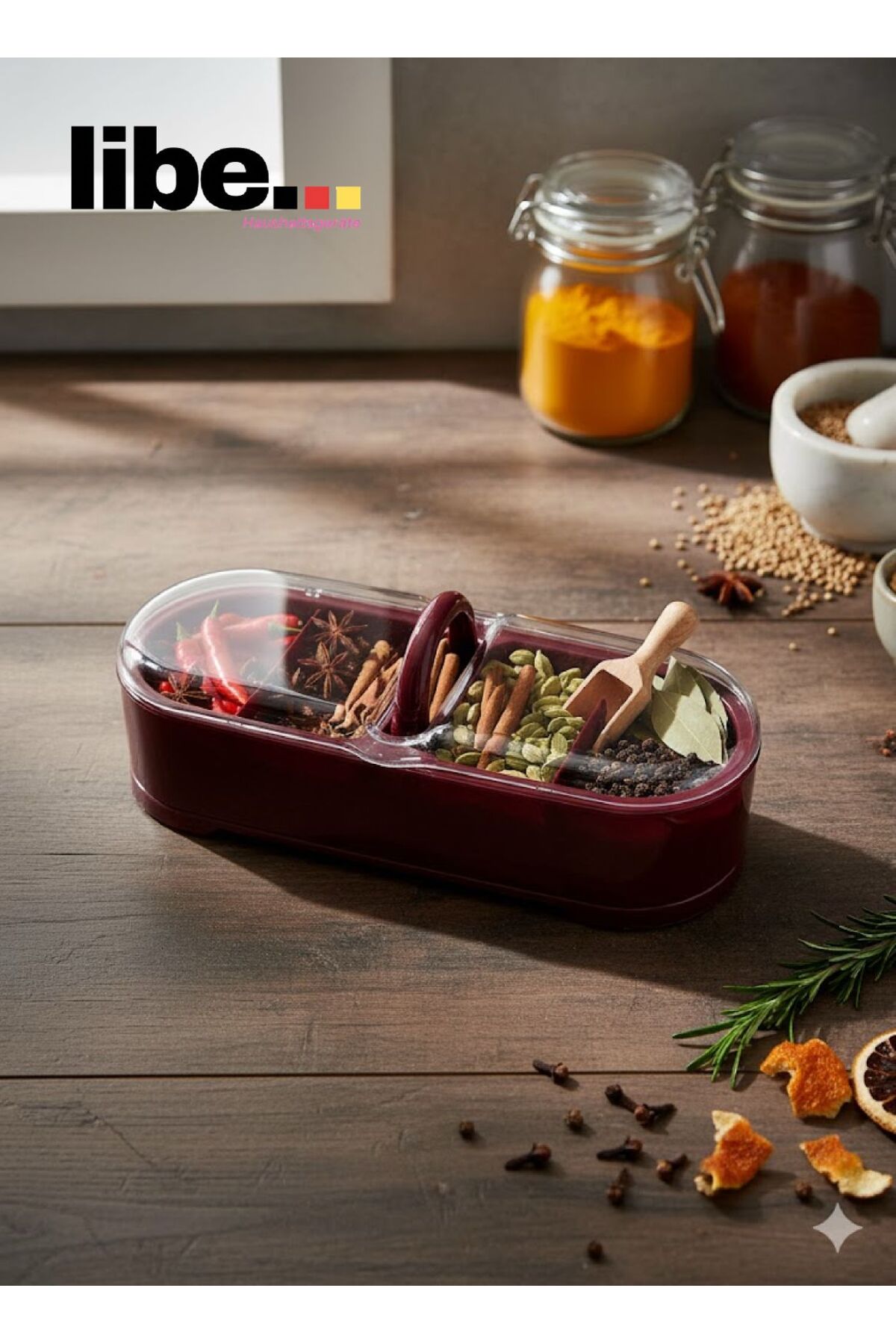 ميزات وعاء توابل أرجواني اللون يوضع على الطاولة من LİBE