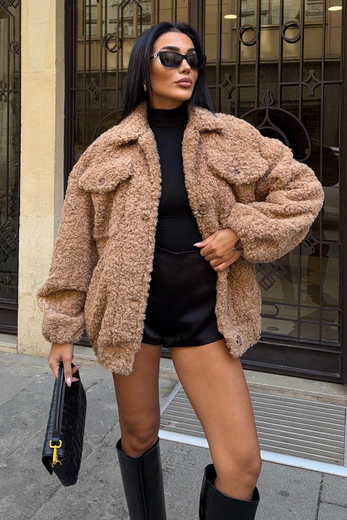 ميزات سترة أساسية من القطيفة ذات ياقة بيج مع جيب 7102 من Lijuri