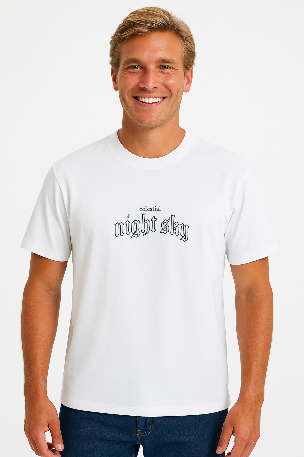 ميزات تي شيرت أبيض بسماء ليلية من Lilo Co