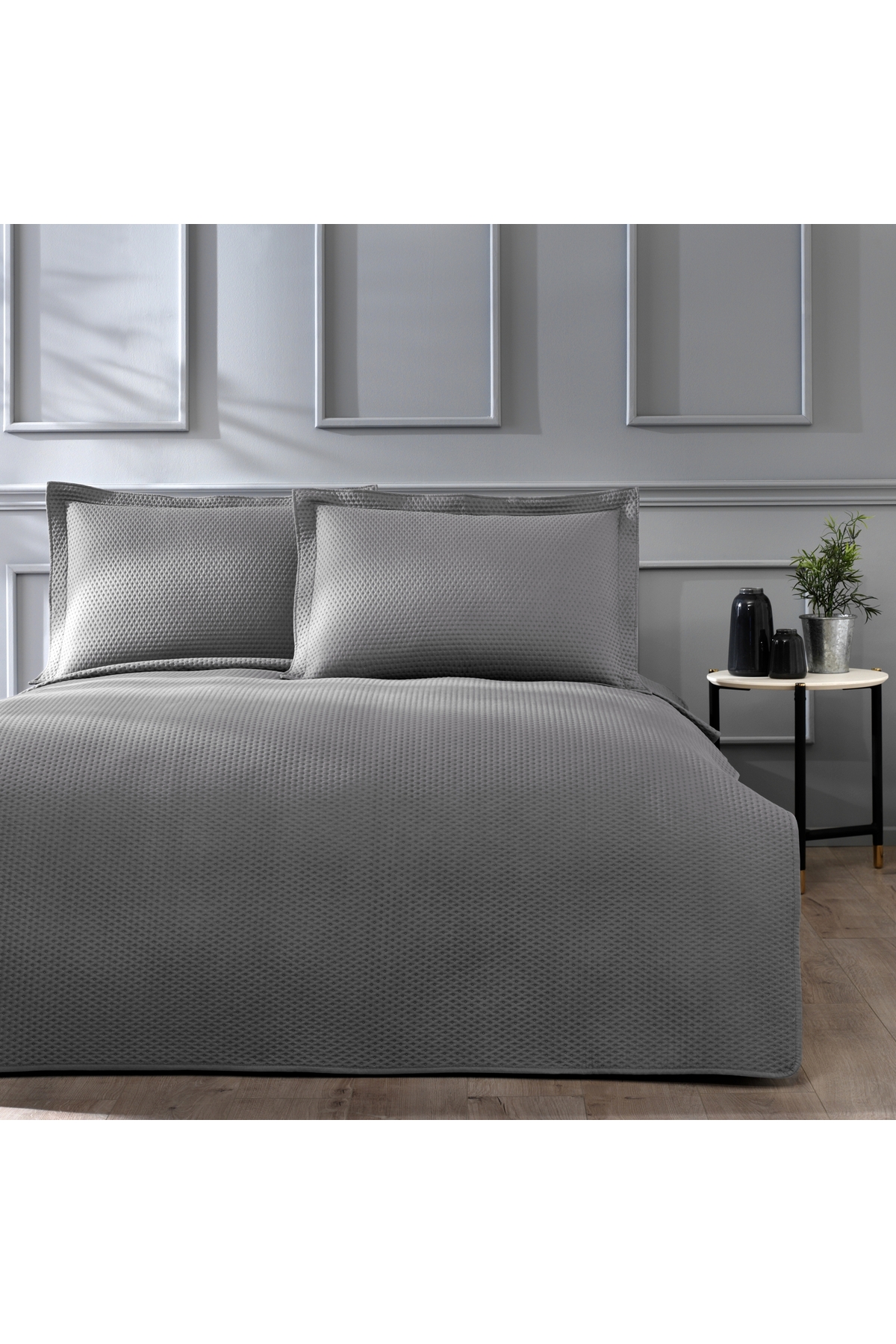 Linens طقم مفرش سرير مزدوج باللون الرمادي
