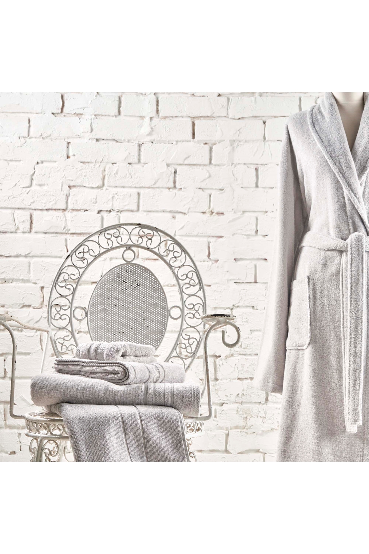 ميزات روب حمام قطن ناعم رمادي M من Linens