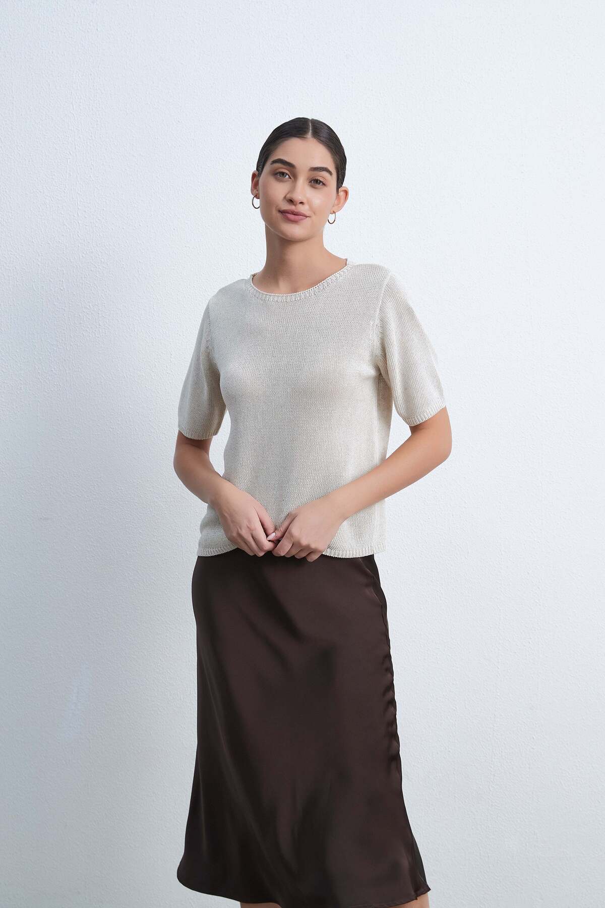 ميزات بلوزة سادة قصيرة بأكمام نصفية من Livia