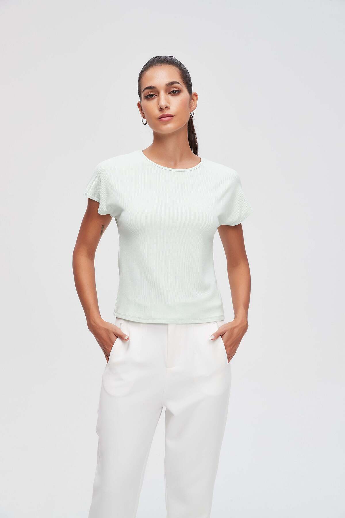 ميزات بلوزة سادة بأكمام نصفية من Livia
