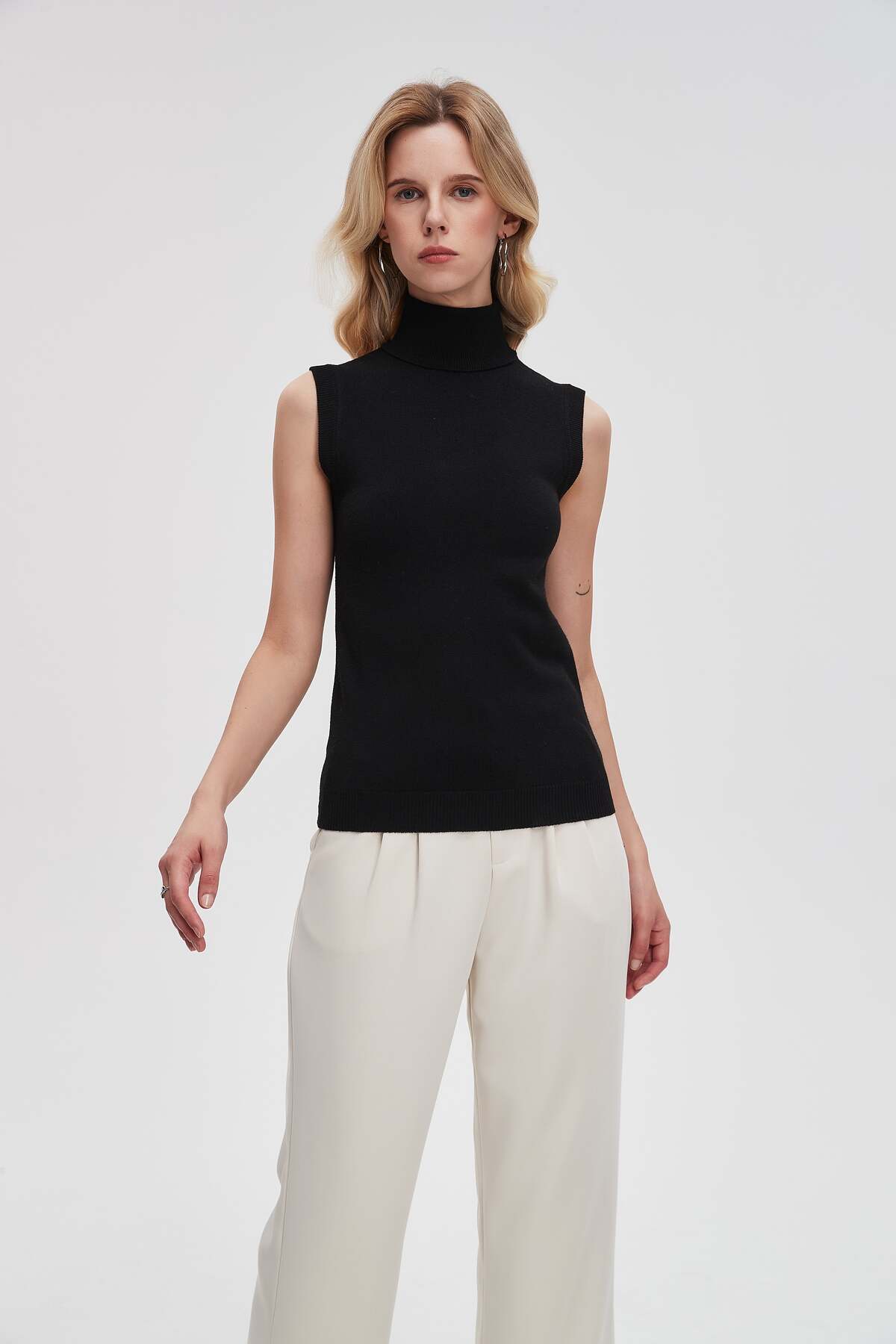 ميزات بلوزة سادة برقبة عالية من Livia