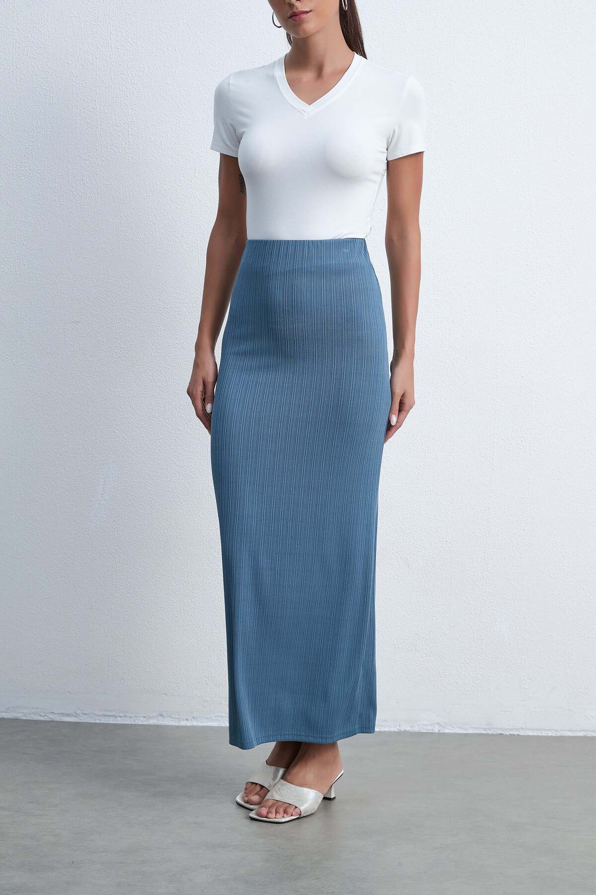 ميزات تنورة ماكسي محبوكة سادة من Livia
