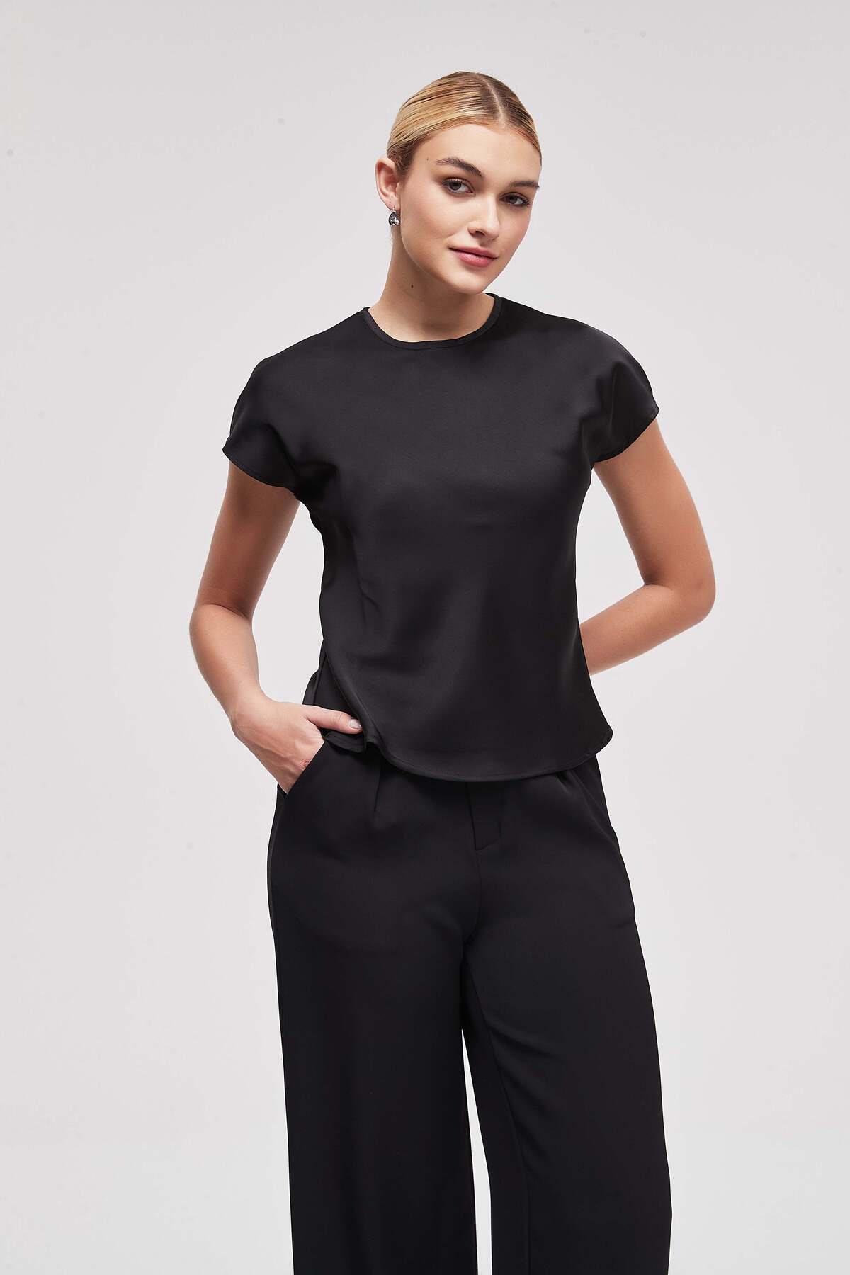 ميزات بلوزة محبوكة سادة بطول الخصر من Livia