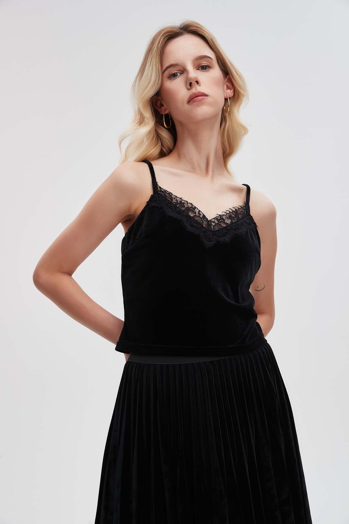 ميزات بلوزة سادة مزينة بالدانتيل من Livia