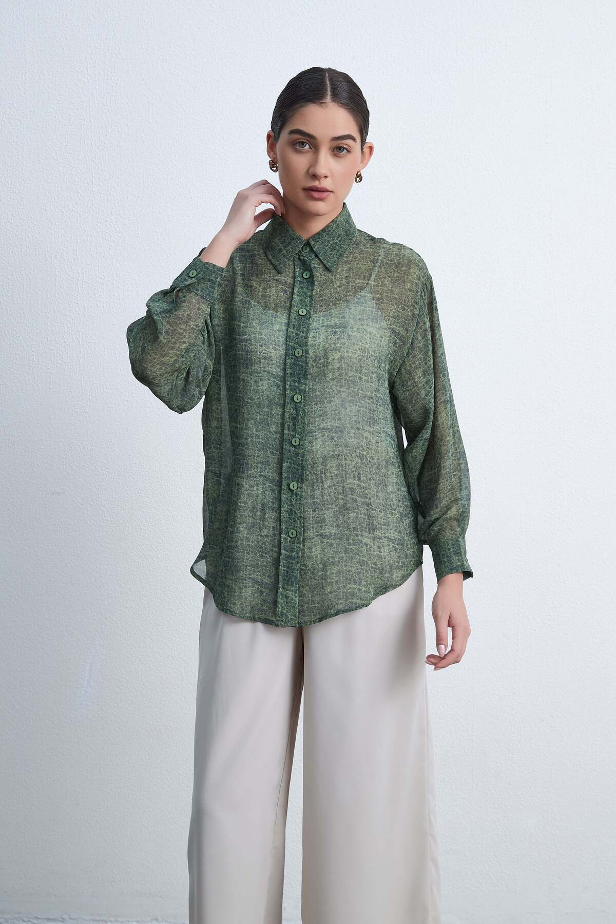 ميزات قميص سادة بأكمام طويلة وأزرار من Livia