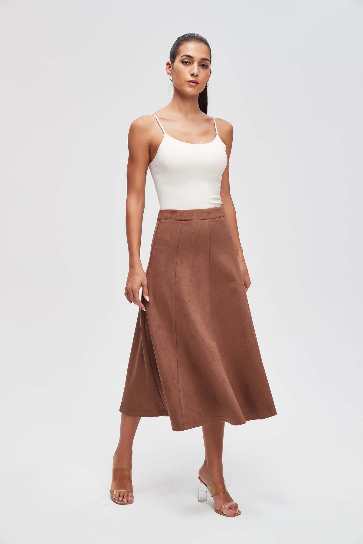 ميزات تنورة متوسطة الطول سادة بتصميم A من Livia