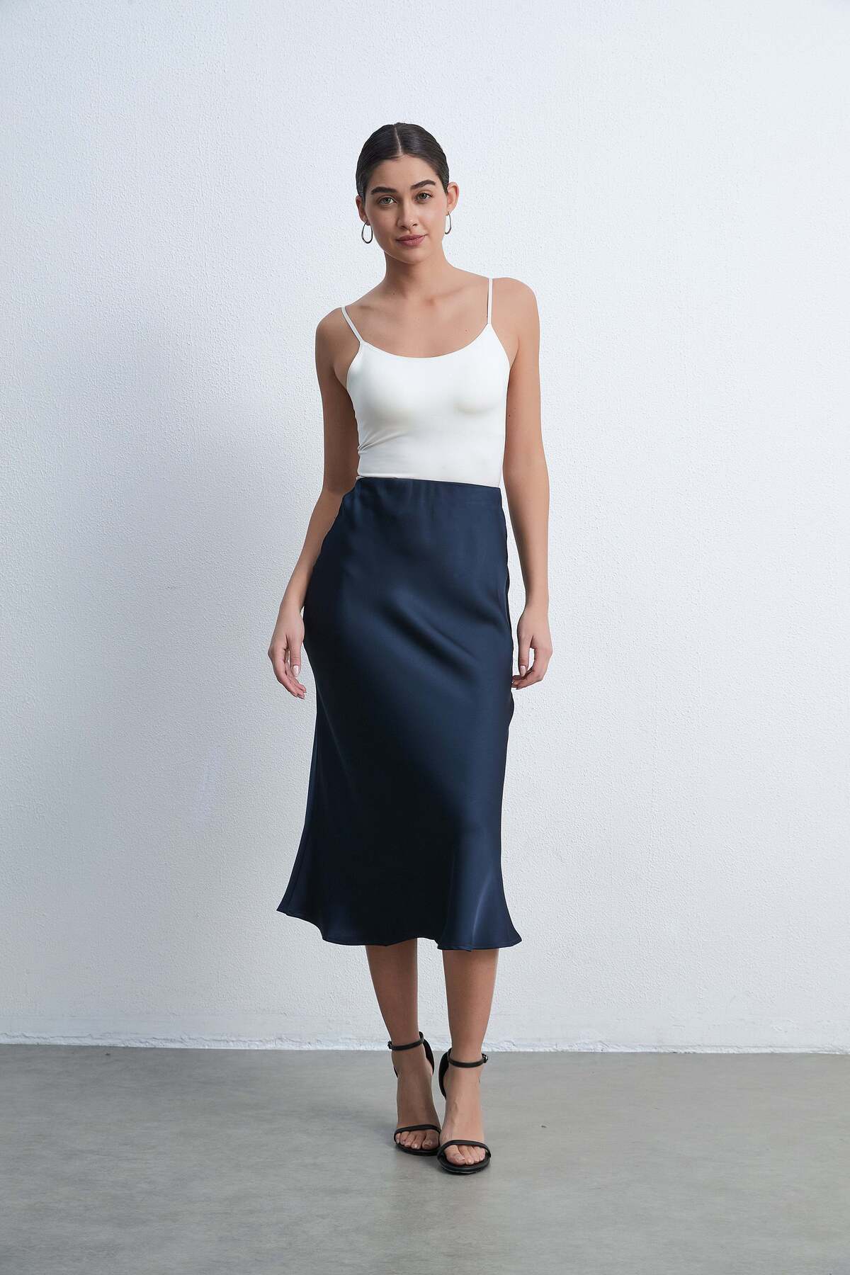 ميزات تنورة ميدي سادة مع كشكشة من Livia