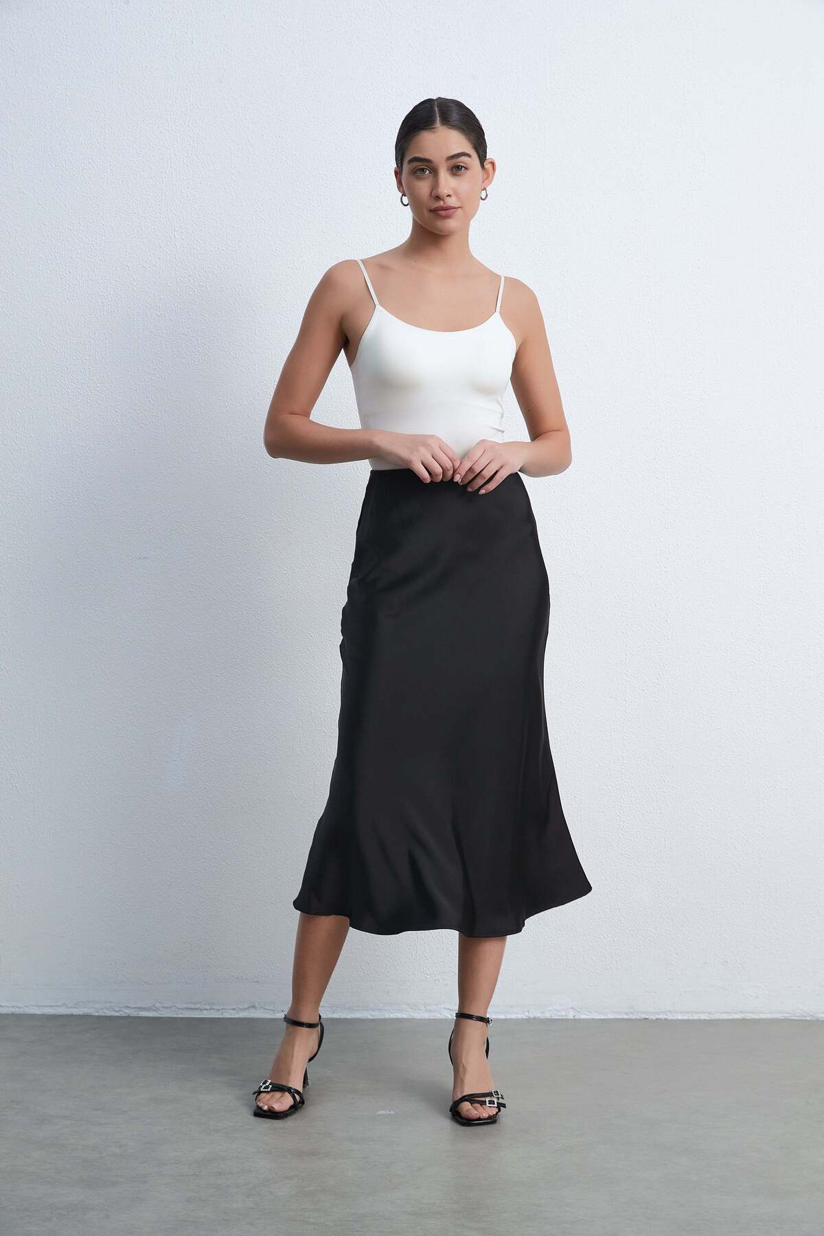 ميزات تنورة ميدي سادة مع كشكشة من Livia