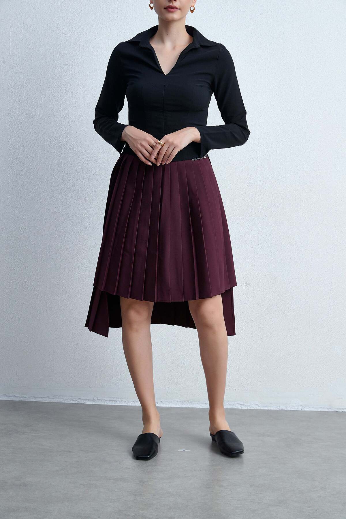 ميزات تنورة سادة بكشكشة بطول الركبة من Livia