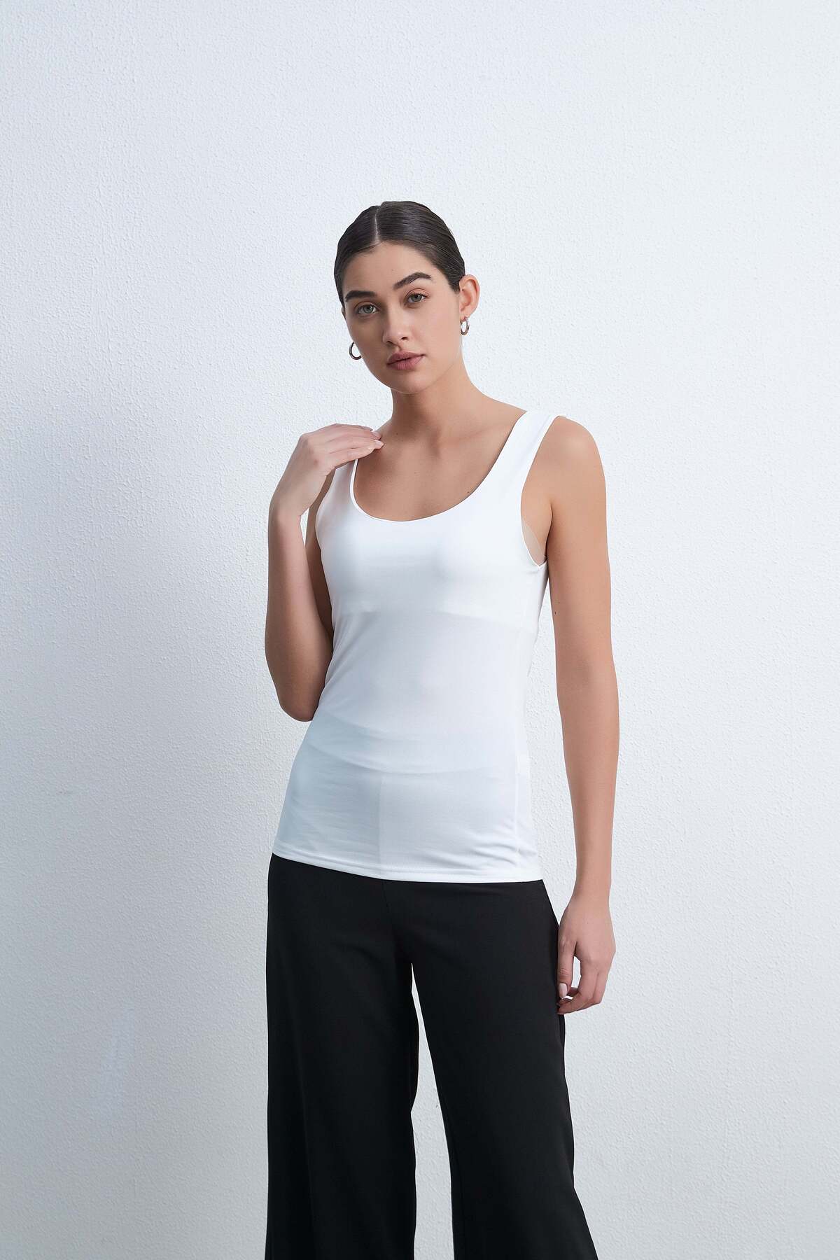 ميزات بلوزة سادة بدون أكمام ورقبة دائرية من Livia