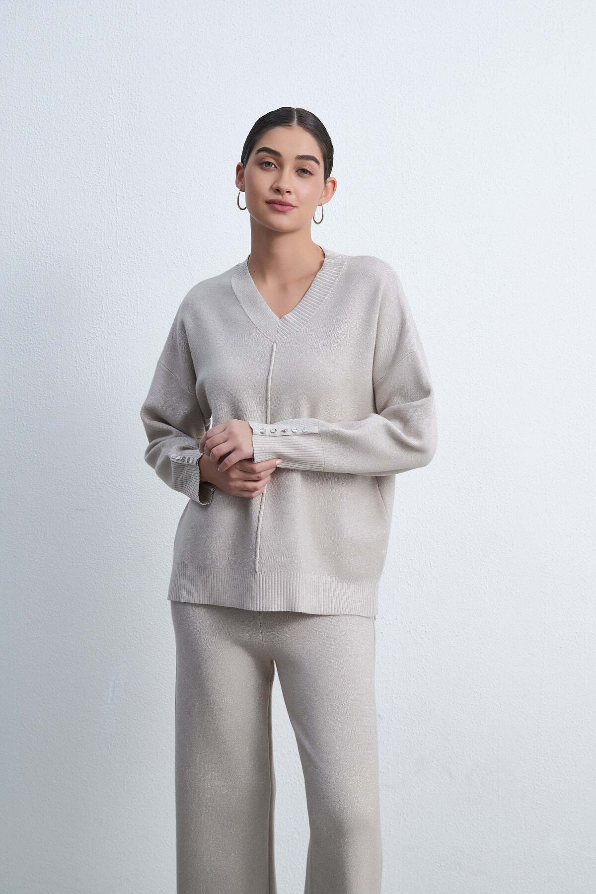 Livia بلوزة سادة بأكمام طويلة ورقبة على شكل حرف V