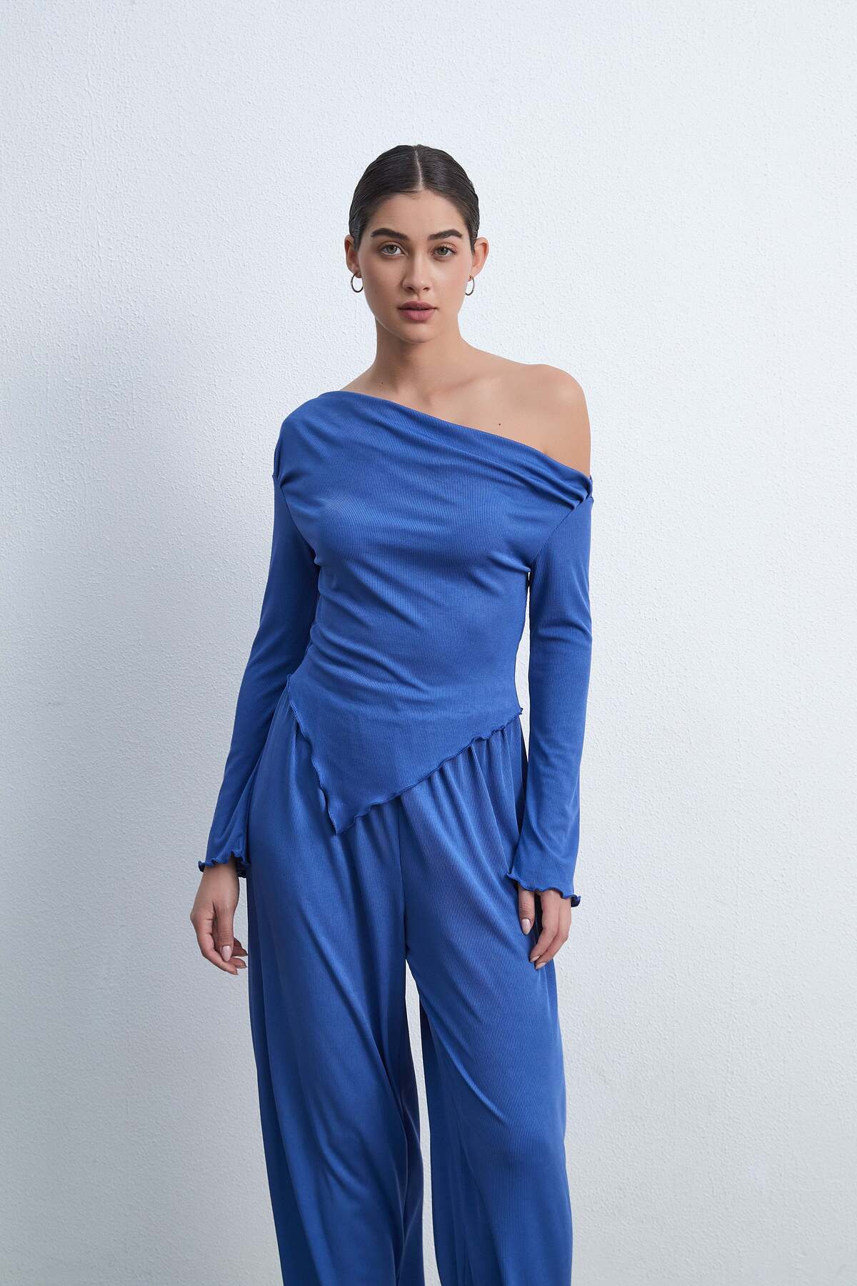 ميزات بلوزة سادة بأكمام طويلة ورقبة على شكل حرف V من Livia