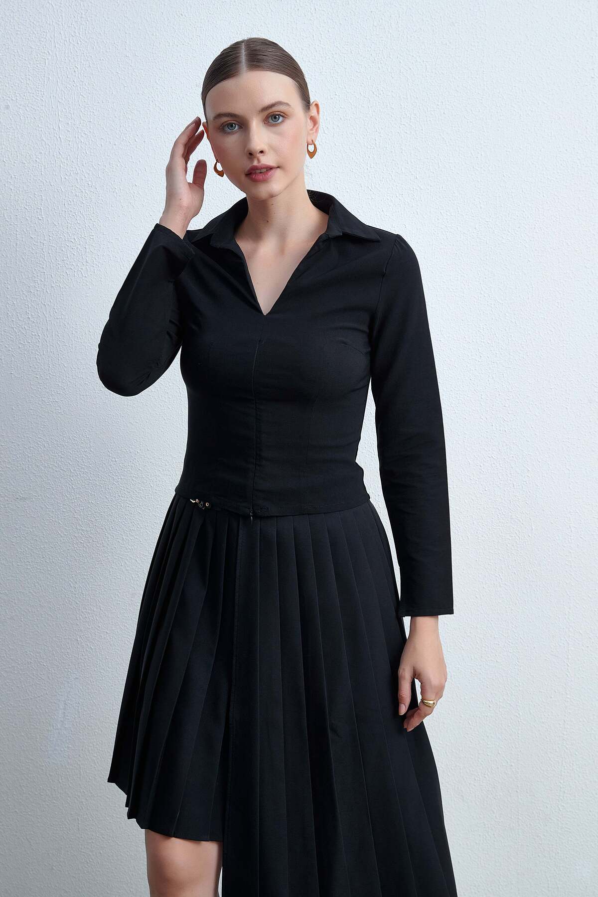ميزات بلوزة سادة بأكمام طويلة ورقبة على شكل حرف V من Livia
