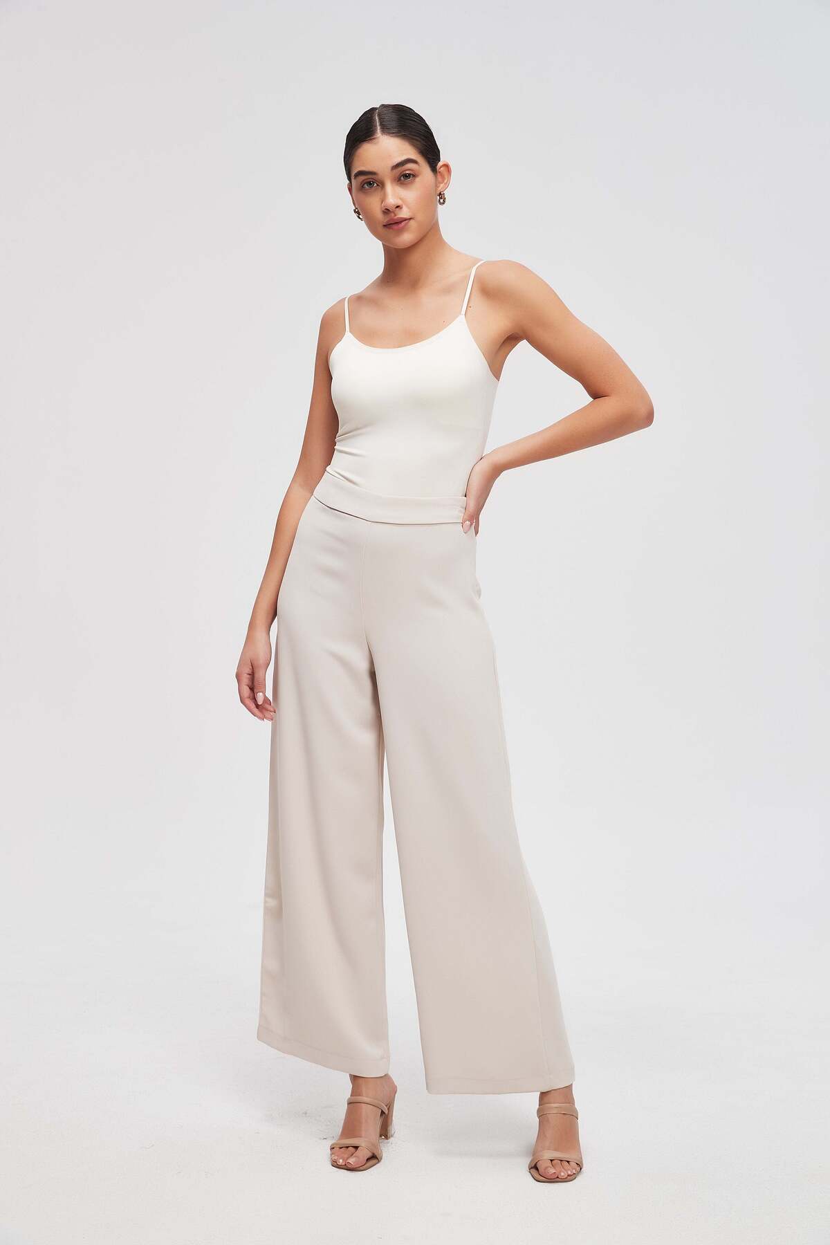 ميزات بنطلون واسع الساق سادة من Livia