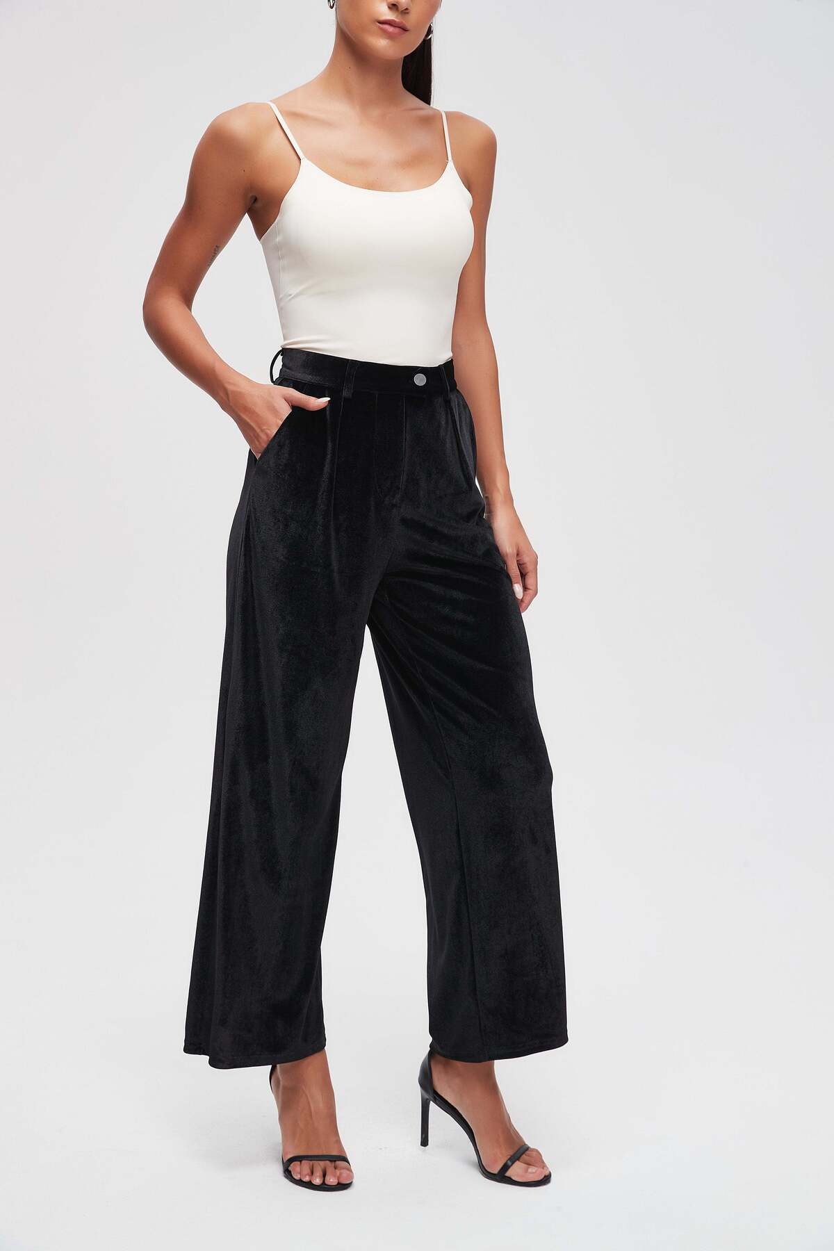 ميزات بنطلون واسع الساق سادة من Livia