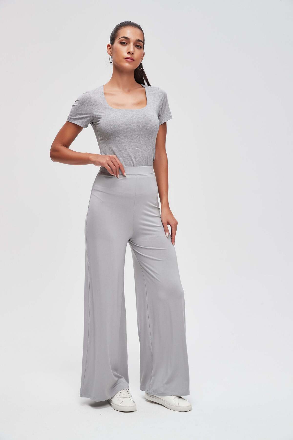ميزات بنطلون واسع الساق سادة من Livia