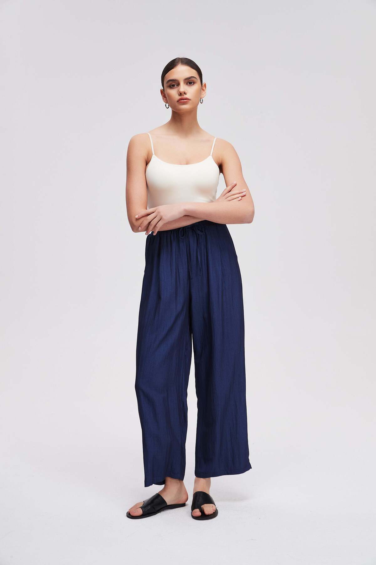 Livia بنطال سادة واسع الساق برباط