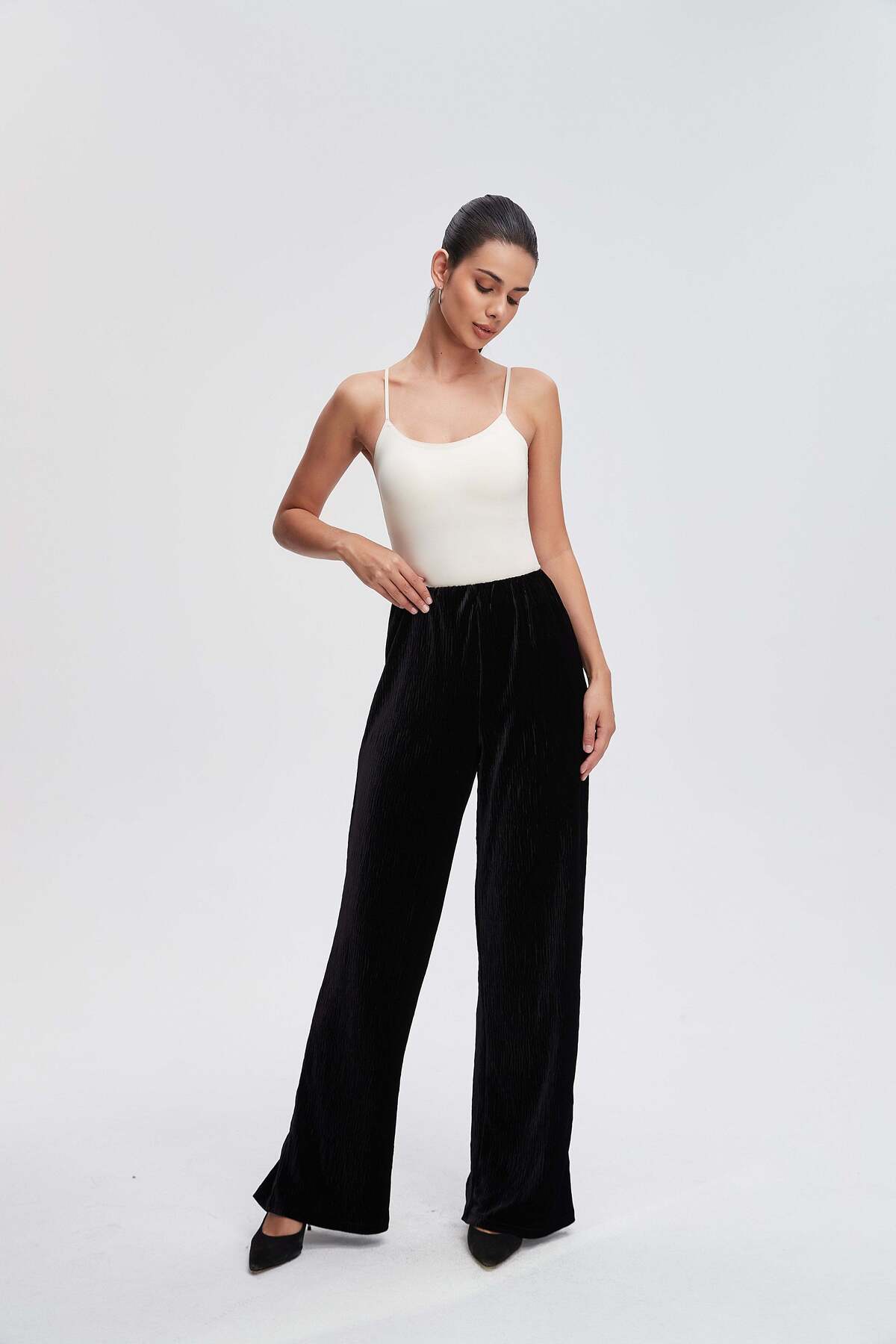 Livia بنطال طويل واسع الساقين بلون موحد