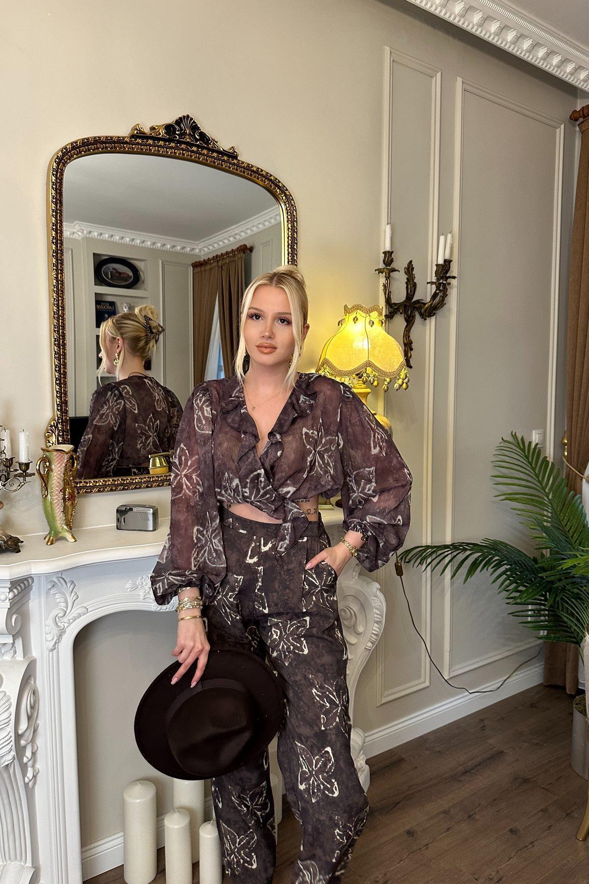 ميزات بنطلون بنمط الأزهار من lizge giyim