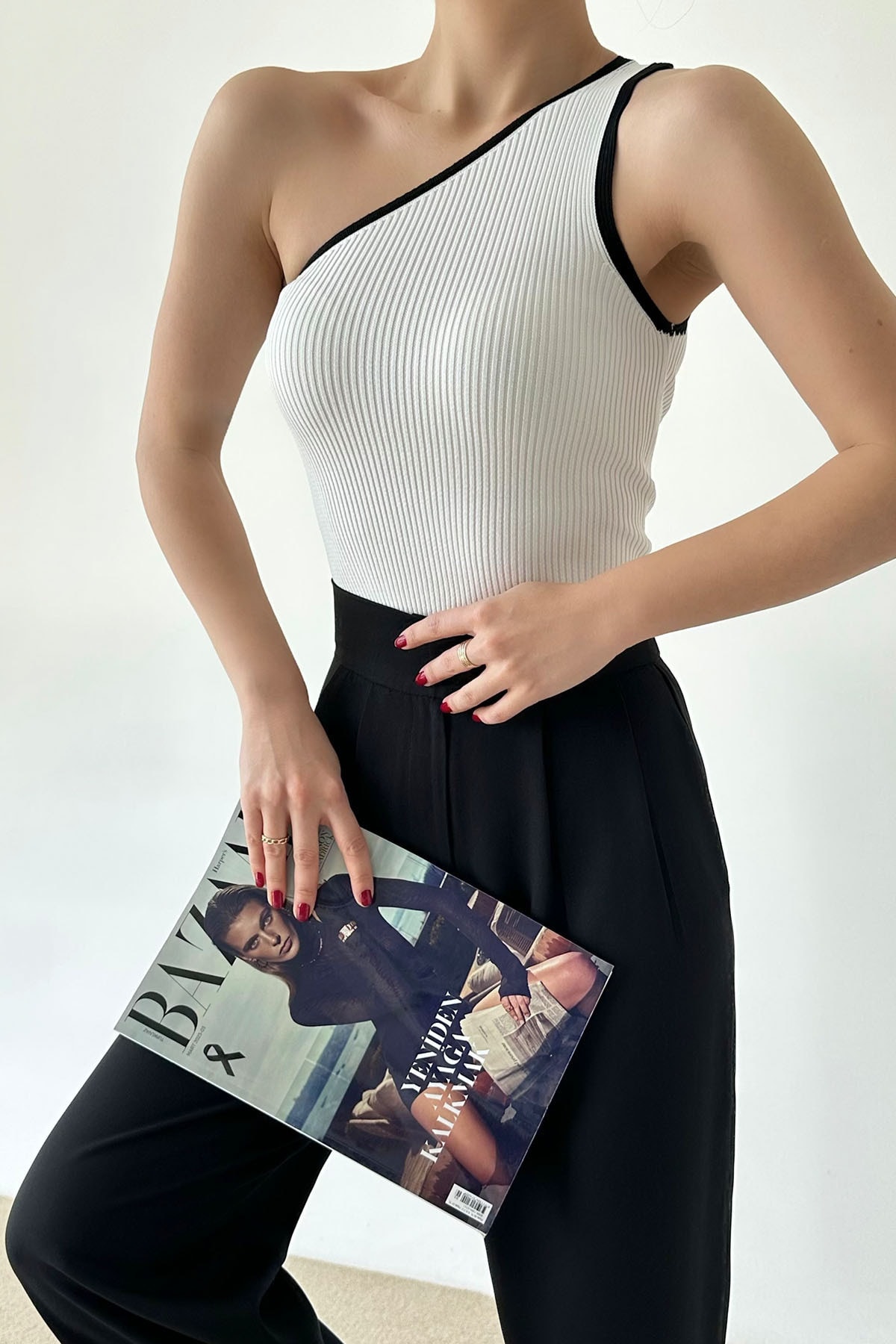 ميزات قميص داخلي مضلع بكتف واحد من Loopy