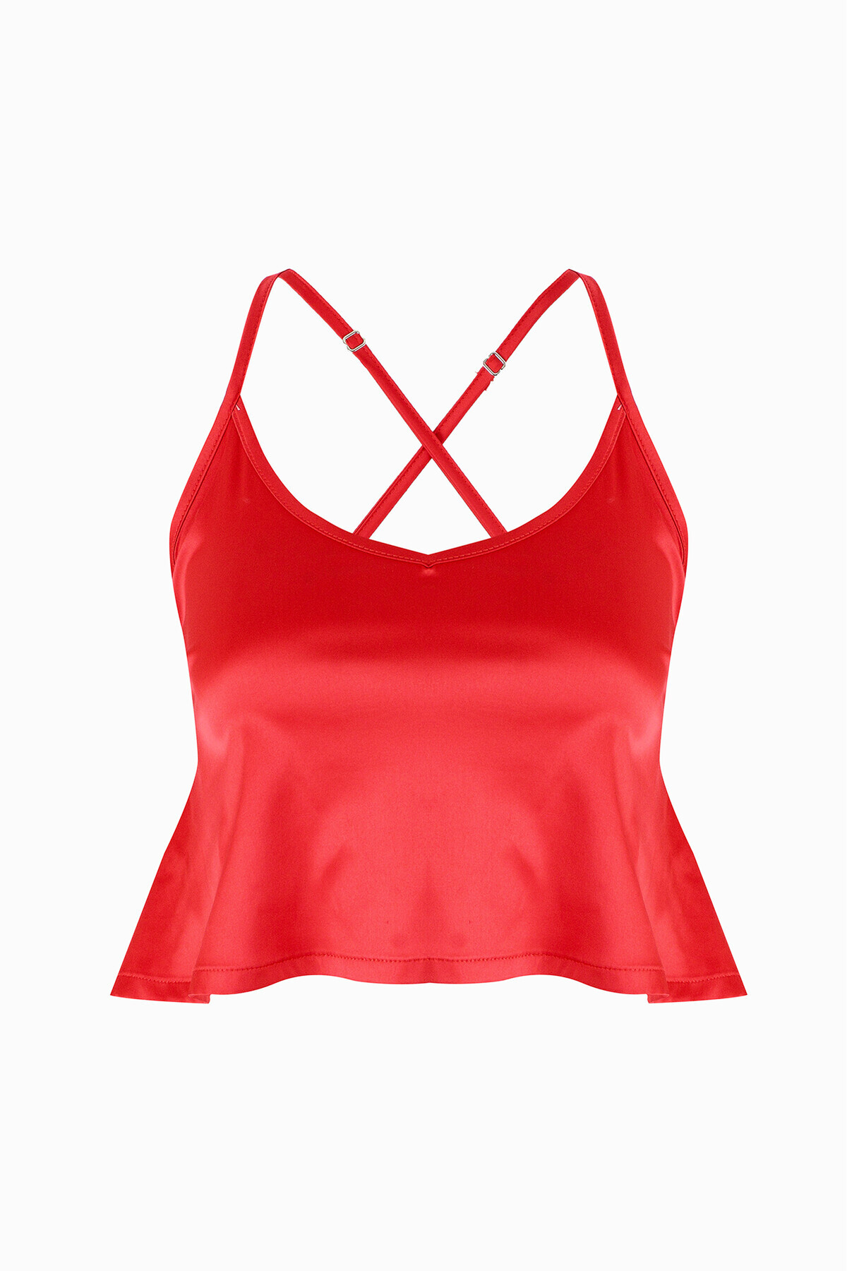 ميزات قميص داخلي بحزام رفيع من Alanis باللون الأحمر من LOYA