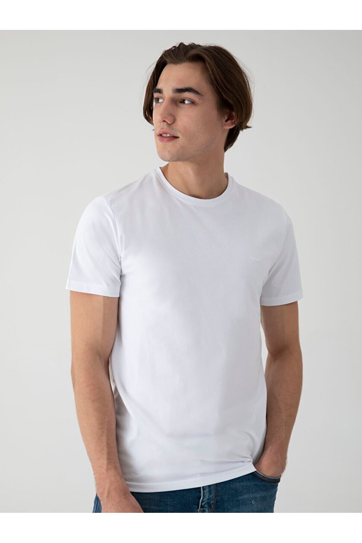 ميزات تي شيرت أبيض نحيف بأكمام قصيرة ورقبة دائرية من Ltb