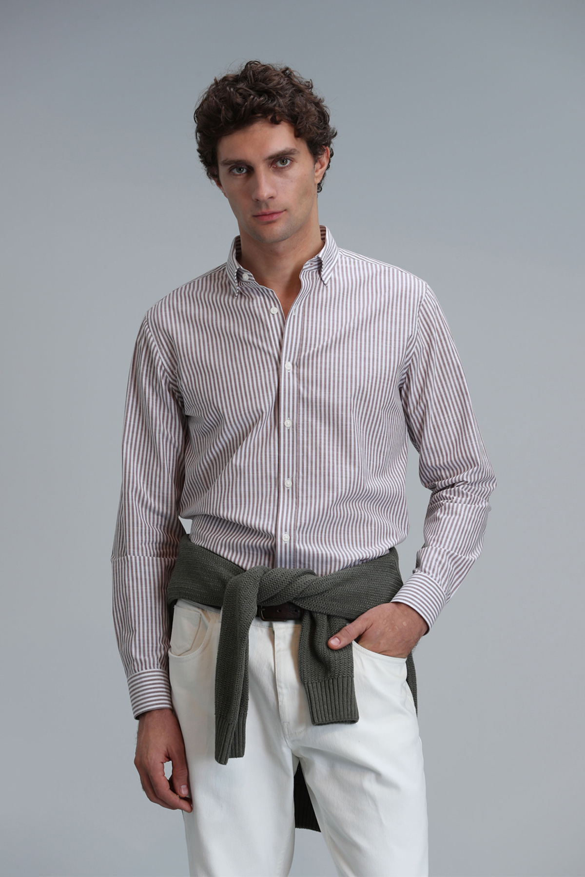 ميزات قميص بني بقصة عادية للرجال - موديل أساسي دافئ من Lufian