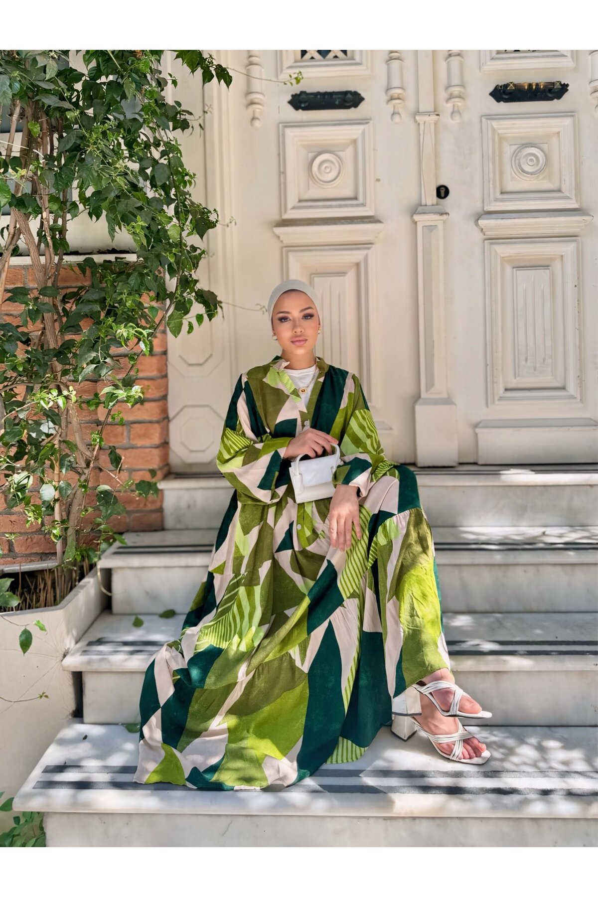 ميزات فستان فيسكوز بنمط هندسي من lurex moda
