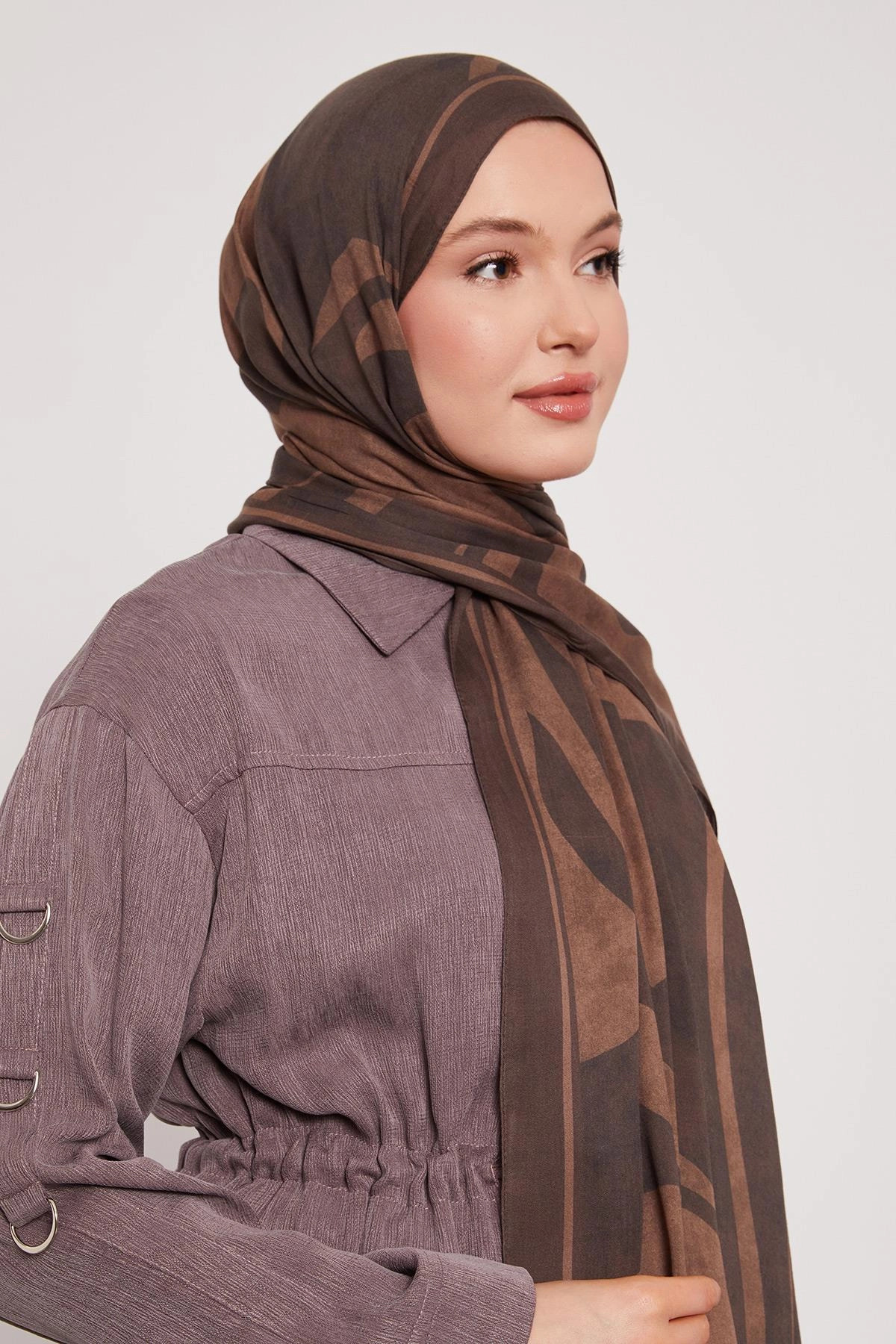 ميزات شال حريري منقوش - بني غامق من LuvenSara