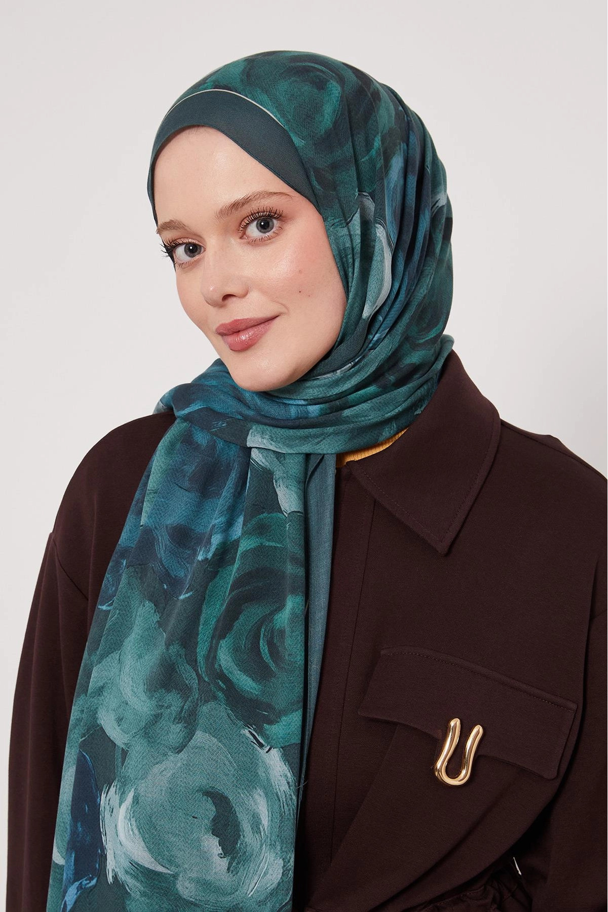 LuvenSara شال حرير منقوش - تركواز غامق