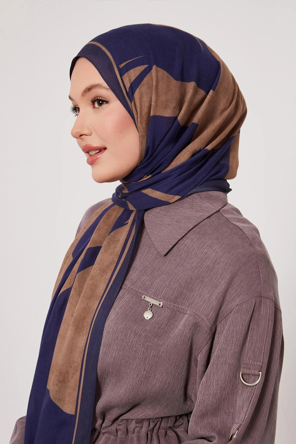 LuvenSara شال حريري منقوش - أزرق ليلي