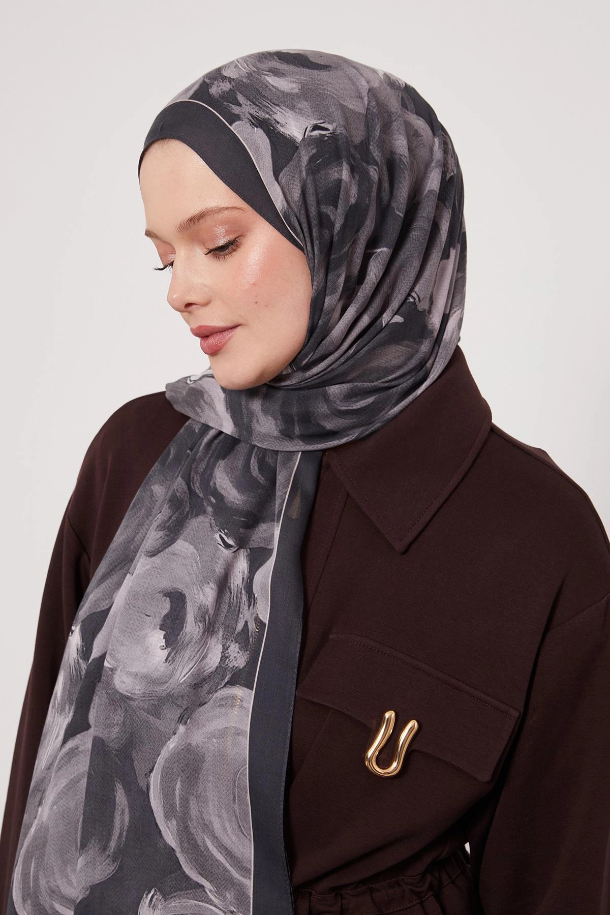 ميزات شال حرير منقوش - لون أنثراسيت ليلي من LuvenSara