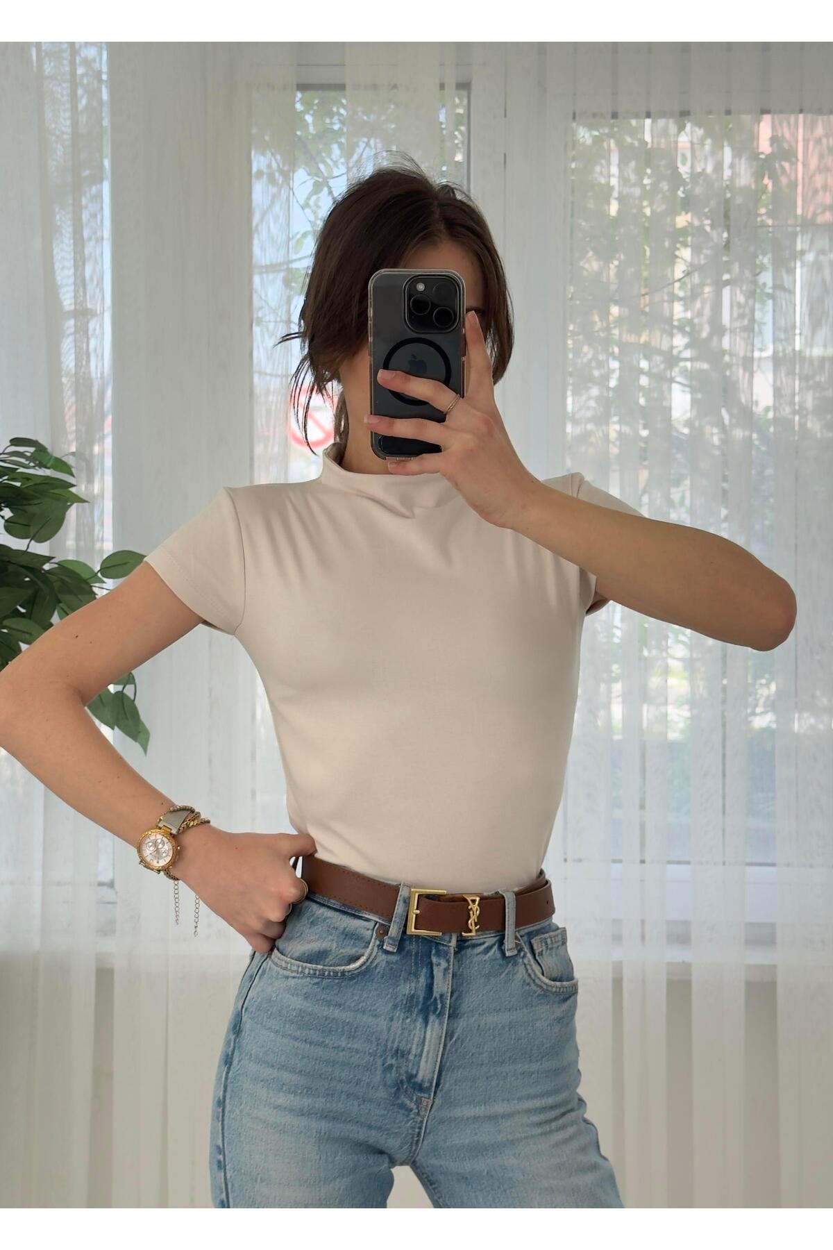 ميزات تي شيرت Buzzy Ecru Baby بأكمام أساسية وياقة من LUVESSE