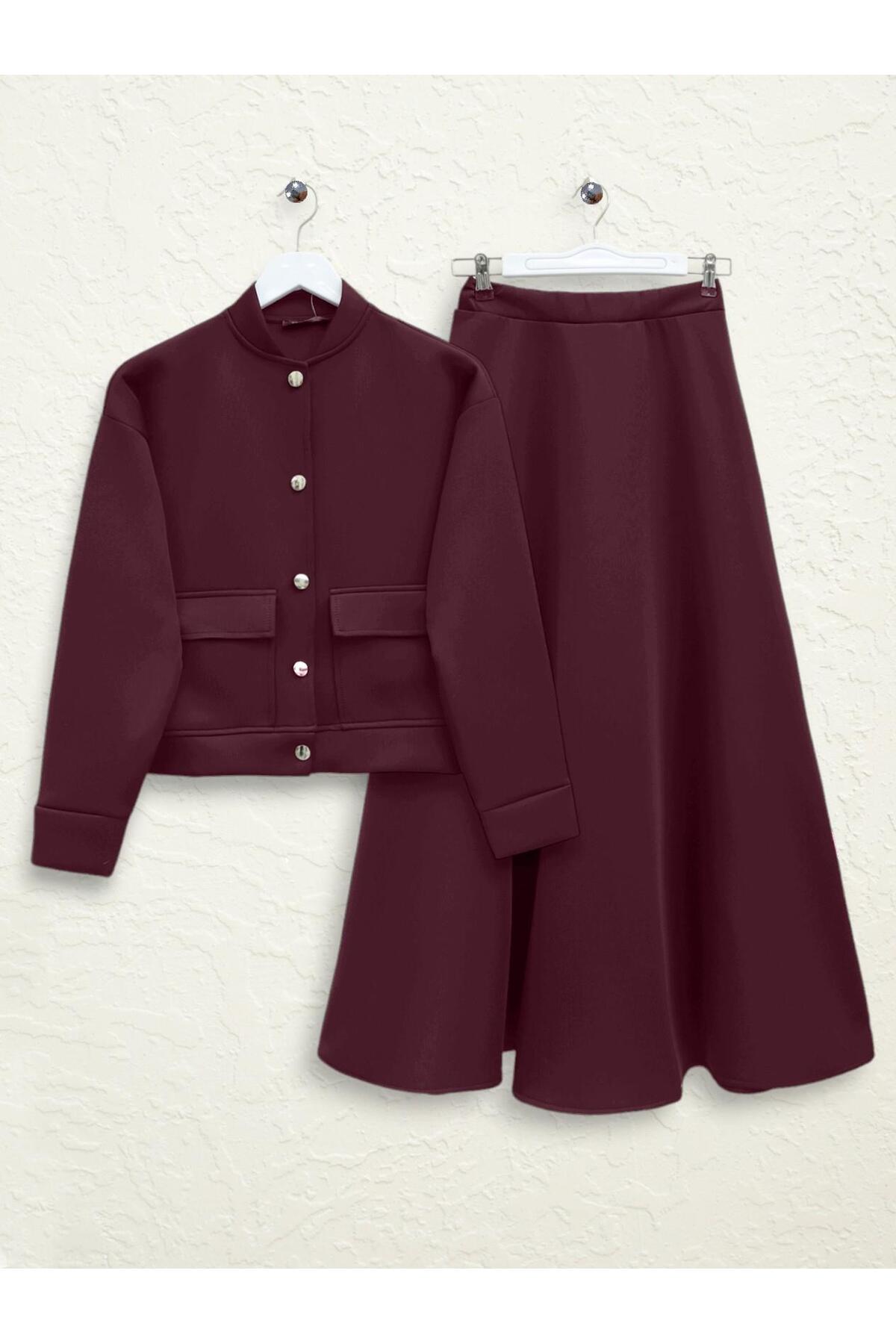 MACMODA طقم تنورة بأزرار معدنية بجيب مزدوج