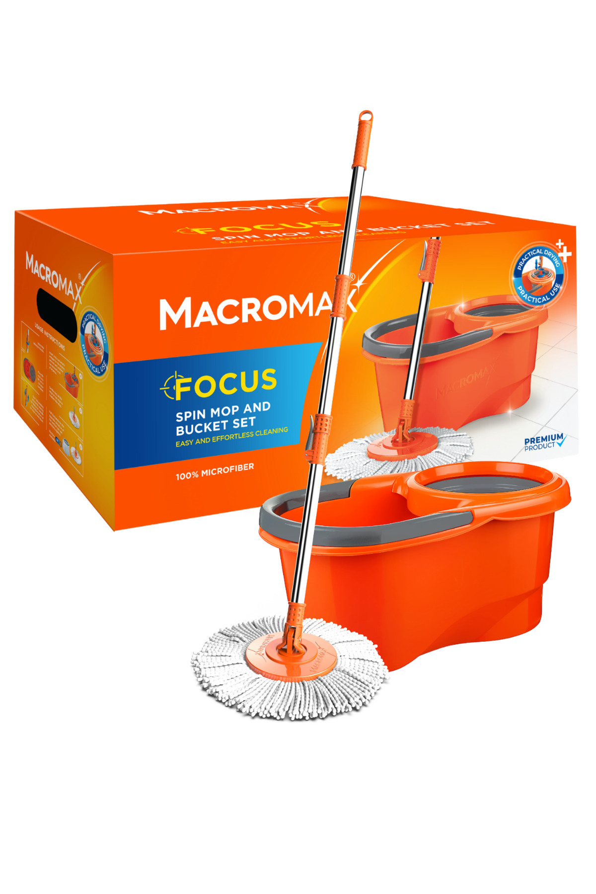 ميزات مجموعة ممسحة فوكس الدوارة بنظام عصر دوار 360 درجة من MACROMAX